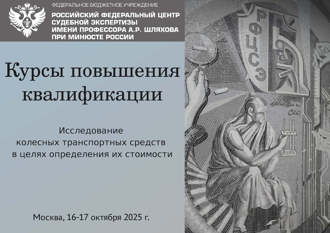 С 14 по 18 октября 2019 года проведены курсы повышения квалификации «Исследование колесных транспортных средств в целях определения размера ущерба, стоимости восстановительного ремонта и оценки» по экспертной специальности 13.4 «Исследование транспортных средств в целях определения стоимости восстановительного ремонта и оценки». Программа курсов ориентирована на углубленное изучение новых «Методических рекомендаций по проведению судебных автотехнических экспертиз и исследований колесных транспортных средств в целях определения размера ущерба, стоимости восстановительного ремонта и оценки», разработанных в ФБУ РФЦСЭ при Минюсте России и применяемых с 01.01.2019 года. Во время обучения проводился разбор экспертных ситуаций.