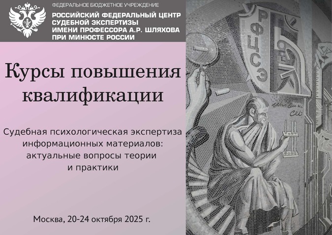 С 16 по 20 сентября на базе РФЦСЭ проведены курсы повышения квалификации по программе «Теоретические и методические основы судебной психологической экспертизы информационных материалов» по экспертной специальности 20.2 «Психологическое исследование информационных материалов».