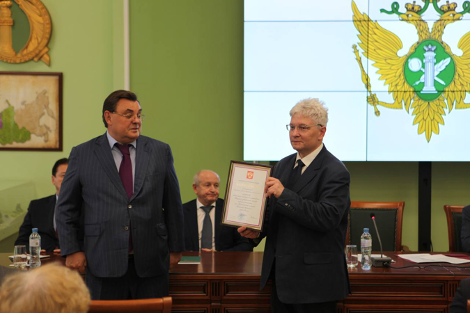 13.11.2023 г. Министр юстиции Российской Федерации Константин Анатольевич Чуйченко представил нового директора ФБУ РФЦСЭ при Минюсте России Сергея Валерьевича Феоктистова и вручил государственные и ведомственные награды работникам Центра.